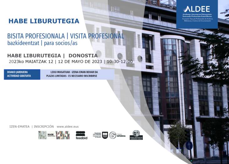 La primera visita profesional de este año será en primavera: el 12 de mayo podremos conocer la Biblioteca HABE. La inscripción ya está abierta. La visita profesional será exclusiva y gratuita para los socios de ALDEE.